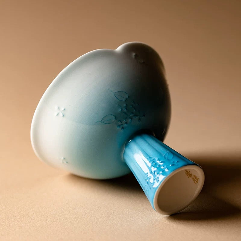 Premium Arita Porcelain Tea Cup - Cobalt Hand-Painted Stemmed Master Cup